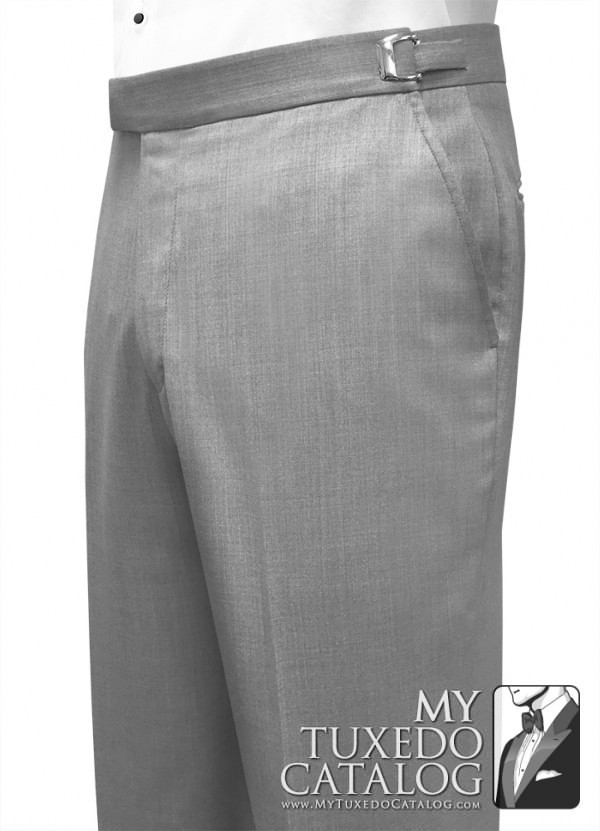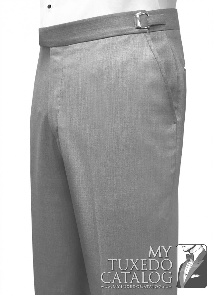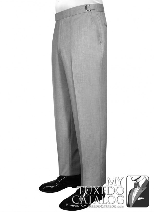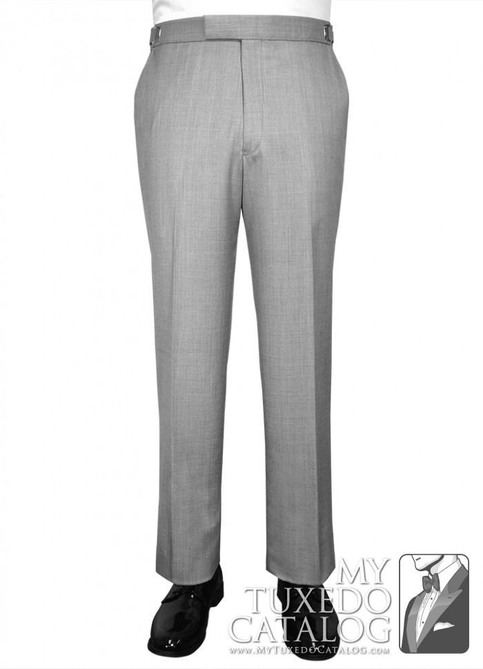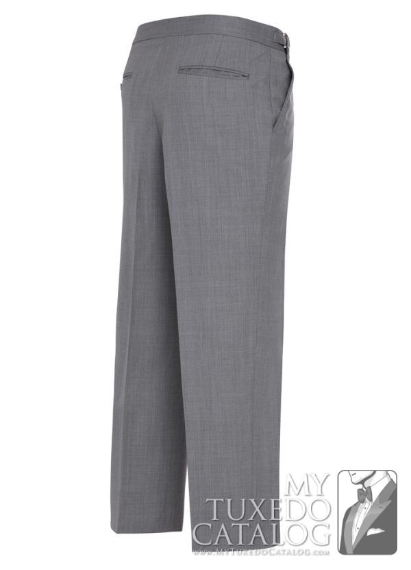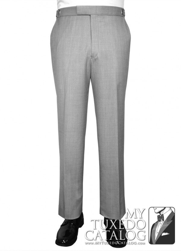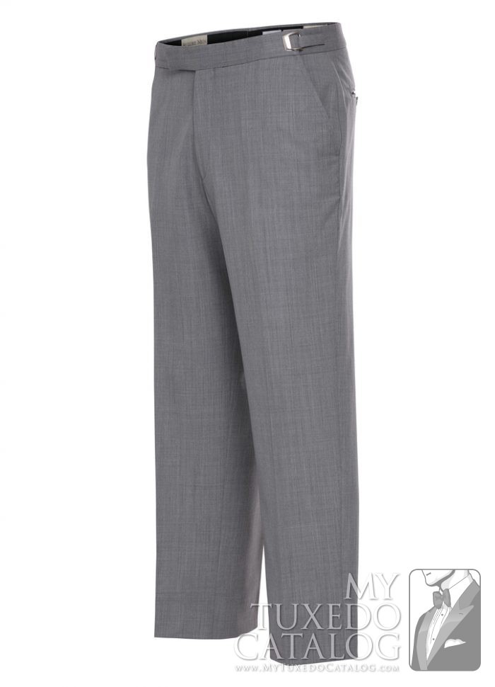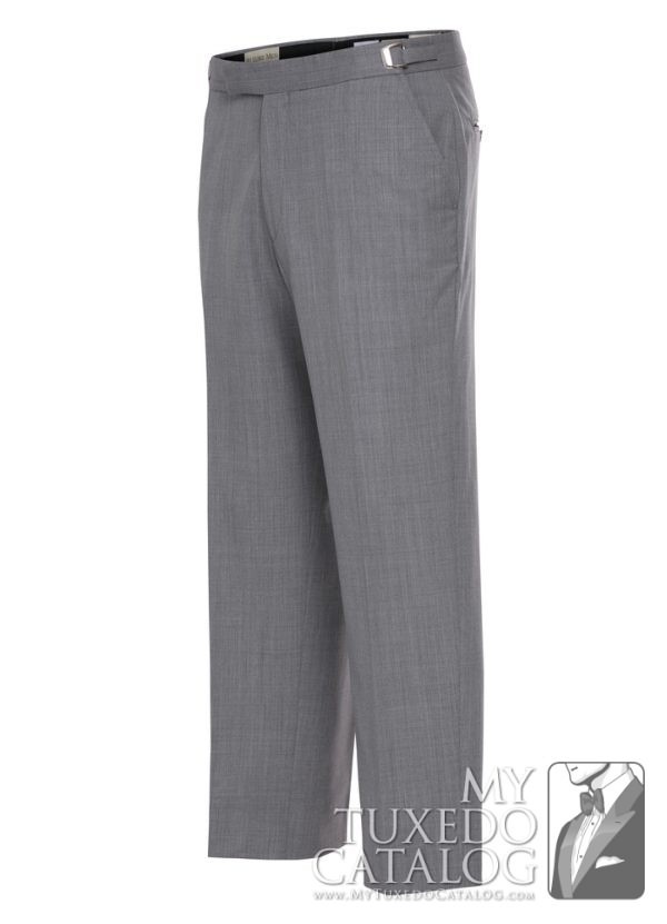This heather grey pant is an 'updated modern fit' that is a little slimmer than our P965 Heather Grey Tuxedo Pant, the P987 Heather Grey Tuxedo Pant, and the P988 Heather Grey Suit Pant. It has a flat front and no side leg stripe. These pants match all our Heather Grey tuxedos and suits, the Heather Grey 'Savoy' Tuxedo, the Heather Grey 'Twilight' Tuxedo, the Heather Grey 'Ceremonia' Suit, and the Heather Grey Allure Men 'Bartlett' Tuxedo.