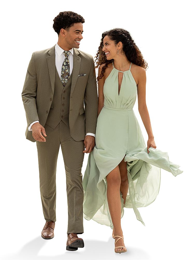 The Sage Green 'Metro' Suit offers a contemporary take on classic tailoring, rendered in a sophisticated sage green color. This suit features a clean, two-button front and a versatile notch lapel, making it suitable for a range of occasions from business-casual to semi-formal events. Crafted from a comfortable stretch poly-viscose material, it provides ease of movement and all-day wearability, while the subtle, earthy tone of the sage green provides a modern and refined alternative to traditional suit colors.