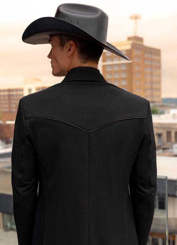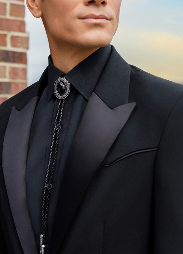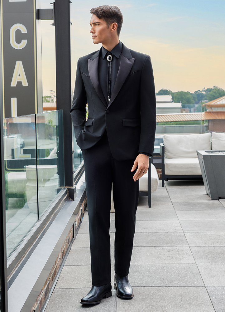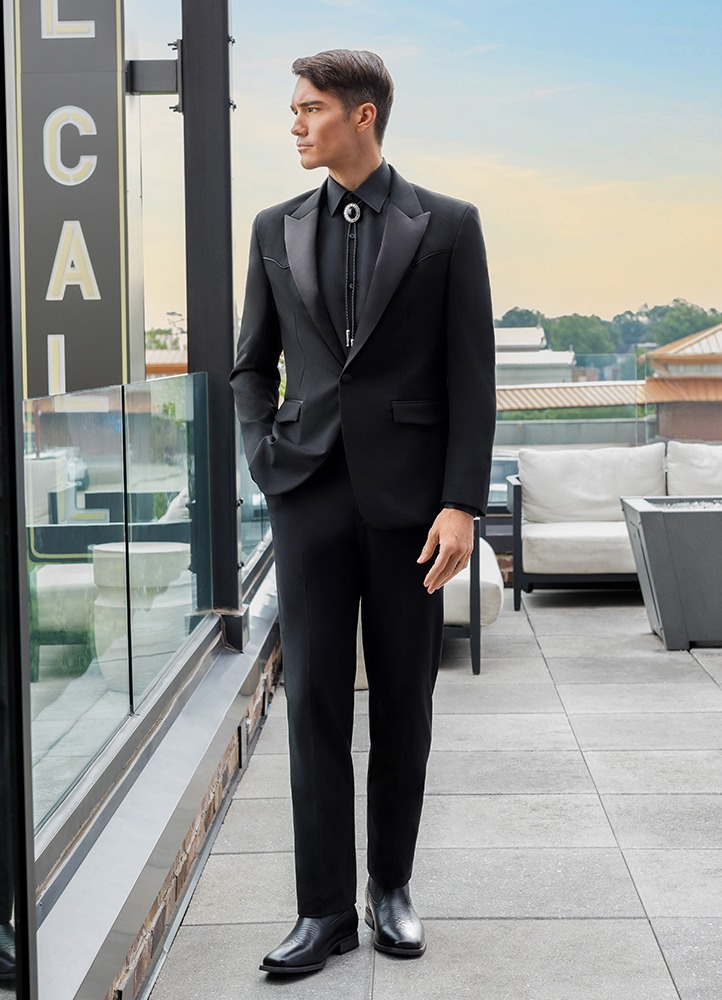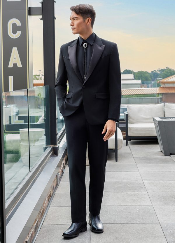 The Black Dutton brings together clean satin lapels, sharp tailoring, and a unique western-inspired flair. Whether it’s a formal ranch wedding or just your personal style, this look adds attitude without losing the elegance. Pair it with boots or a bolo tie to make it your own.