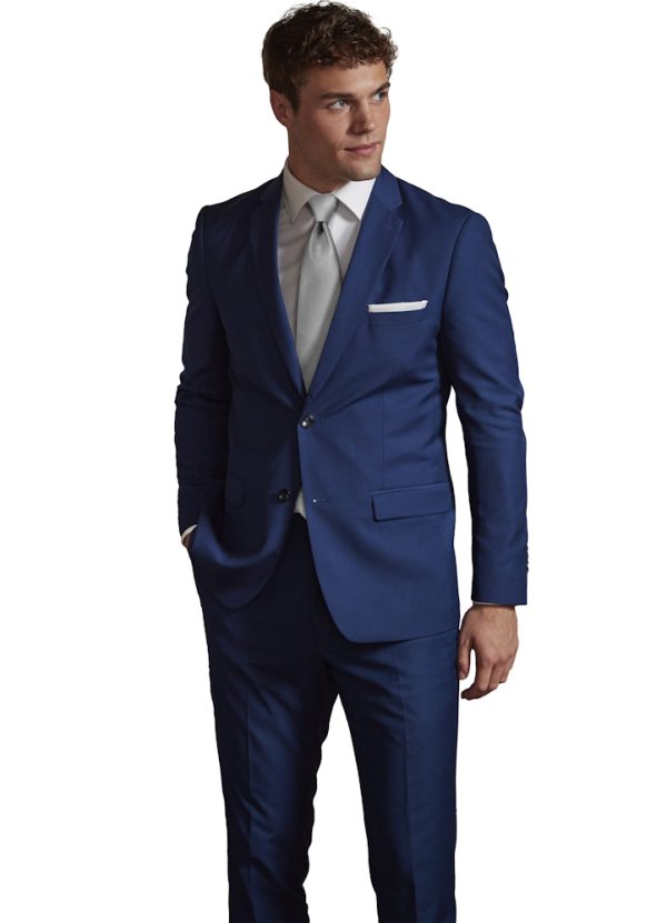 This is the Cobalt Blue Power-Stretch Suit Coat, which is an ultra-slim fit. Its single-breasted design, notch lapel, and side vents strike the perfect balance between classic and contemporary. Crafted from a stretch poly/viscose blend, it drapes beautifully and resists wrinkles. Polished plastic buttons add refinement, while the self-top collar frames your face elegantly. Whether you’re closing deals or attending a semi-formal event, this coat exudes confidence and style.