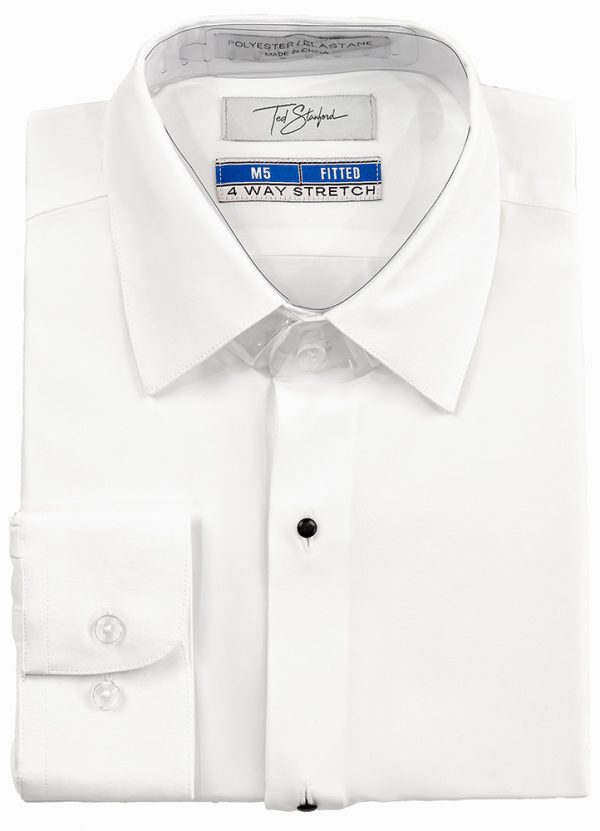 White Fitted Bi-Stretch Turn Down Collar Shirt