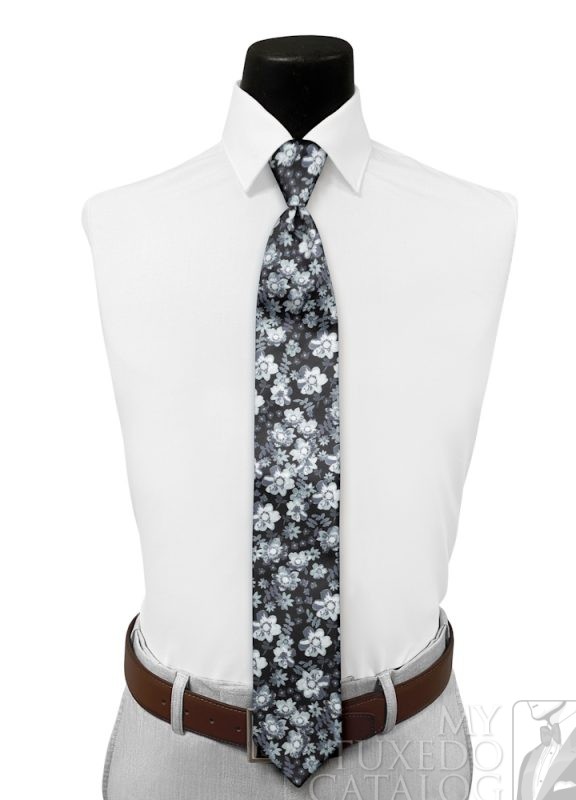 Dark Grey 'Sienna Floral' Tie-Yourself Long Tie