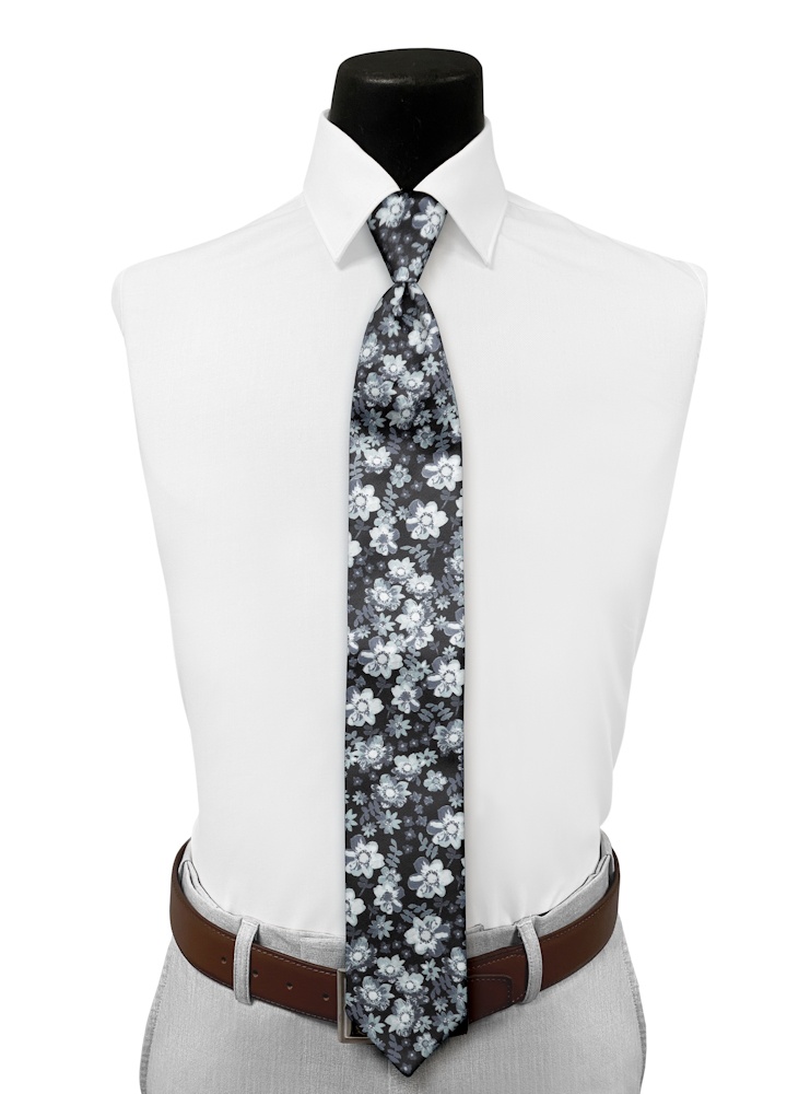 Dark Grey 'Floral Fusion' Tie-Yourself Long Tie