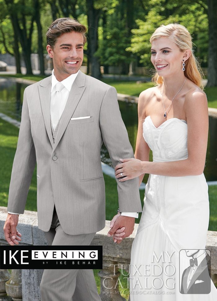 Not all dressy events require the formality of a tuxedo, for some a suit will suffice. The Grenada slim fit light grey suit by Ike Behar is made of luxuriously soft super 120's wool. The Grenada stands apart from other suits with its 1 button front and peak lapels. Whether you're on a beach or in a barn, your wedding party will look great in this suit!