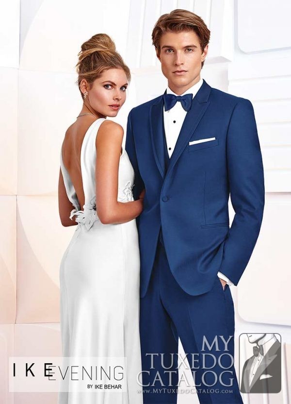 The Cobalt Blue ‘Greenwich’ Tuxedo by Ike Behar arrives in the wake of the increasingly popularity blue formalwear. It features a one button single-breasted front, peak lapel, satin besom pockets, and is fashioned from luxuriously soft Super 120’s wool in a slim cut for a closer, more exacting fit. This tuxedo is a beautifully colorful option for your special event.