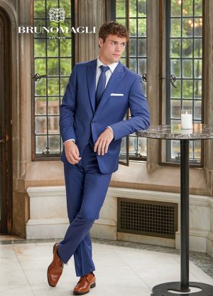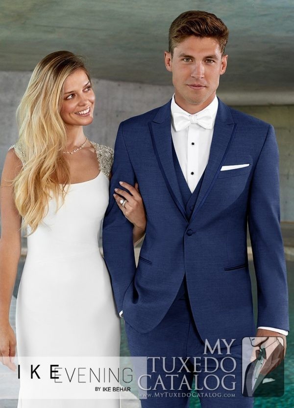 Looking for a fresh new shade of Blue? Look no further than the Dusk Blue ‘Lane’ Tuxedo by Ike Behar. Constructed of luxuriously soft Super 120’s Wool & features a Slim Fit, 1 button front, satin edge lapel with side vents. This elegant new shade of blue is perfect for your next formal event.