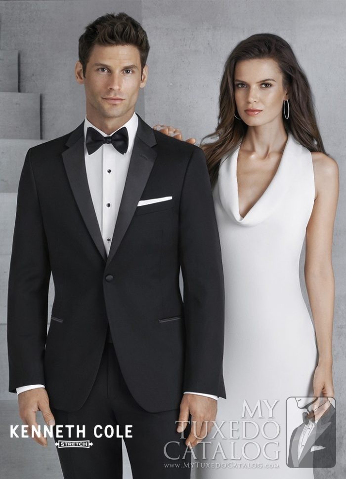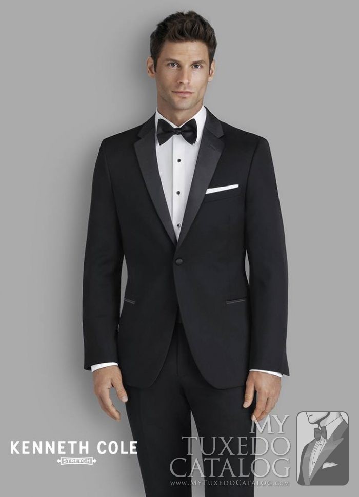 On the surface, the Black Stretch ‘Parkville’ Tuxedo by Kenneth Cole seems like a normal black tuxedo, appropriate for a wide variety of black tie and formal evening events. But the Parkville is far from typical. Because this style is fashioned from a black nylon/spandex material, the ensemble stretches much more than a normal tuxedo, allowing for a more fitted look than is typical in most rental formalwear. This style is an excellent choice for those looking for traditional styling with a close fit that matches todays hottest trends.