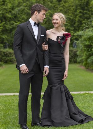 The black ‘Miles’ slim tuxedo by Ike Behar is as classic and elegant and it is beautifully fitted. Featuring a 1 button single-breasted front, satin shawl lapels, satin besom pockets, fashioned from soft stretch poly/wool fabric.